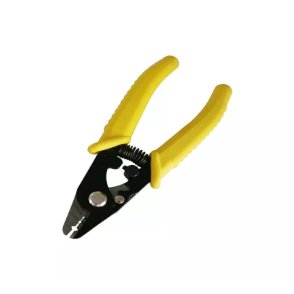 Three-hole fibre optic stripper model performs all common fibre stripping functions, this fibre optic stripper strips the 1.6-3 mm fibre jacket down to the 600-900 micron buffer coating, the second hole strips the 600-900 micron buffer coating down to the 250-micron coating and the third hole is used to strip the 250 micron cables down to the glass fibre without nicks or scratches.